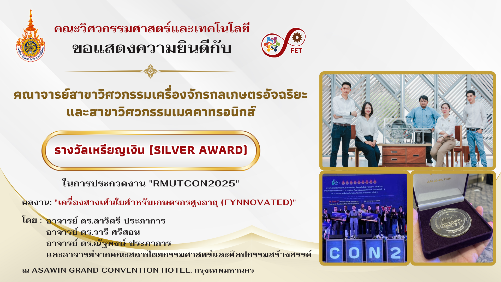 คณะวิศวกรรมศาสตร์และเทคโนโลยี ขอแสดงความยินดีกับ นักศึกษาที่ได้รับรางวัลในการประกวดผลงานโครงงานสหกิจศึกษา มหาวิทยาลัยเทคโนโลยีราชมงคลอีสาน ประจำปีการศึกษา 2567 ในวันที่ 14 มีนาคม 2568