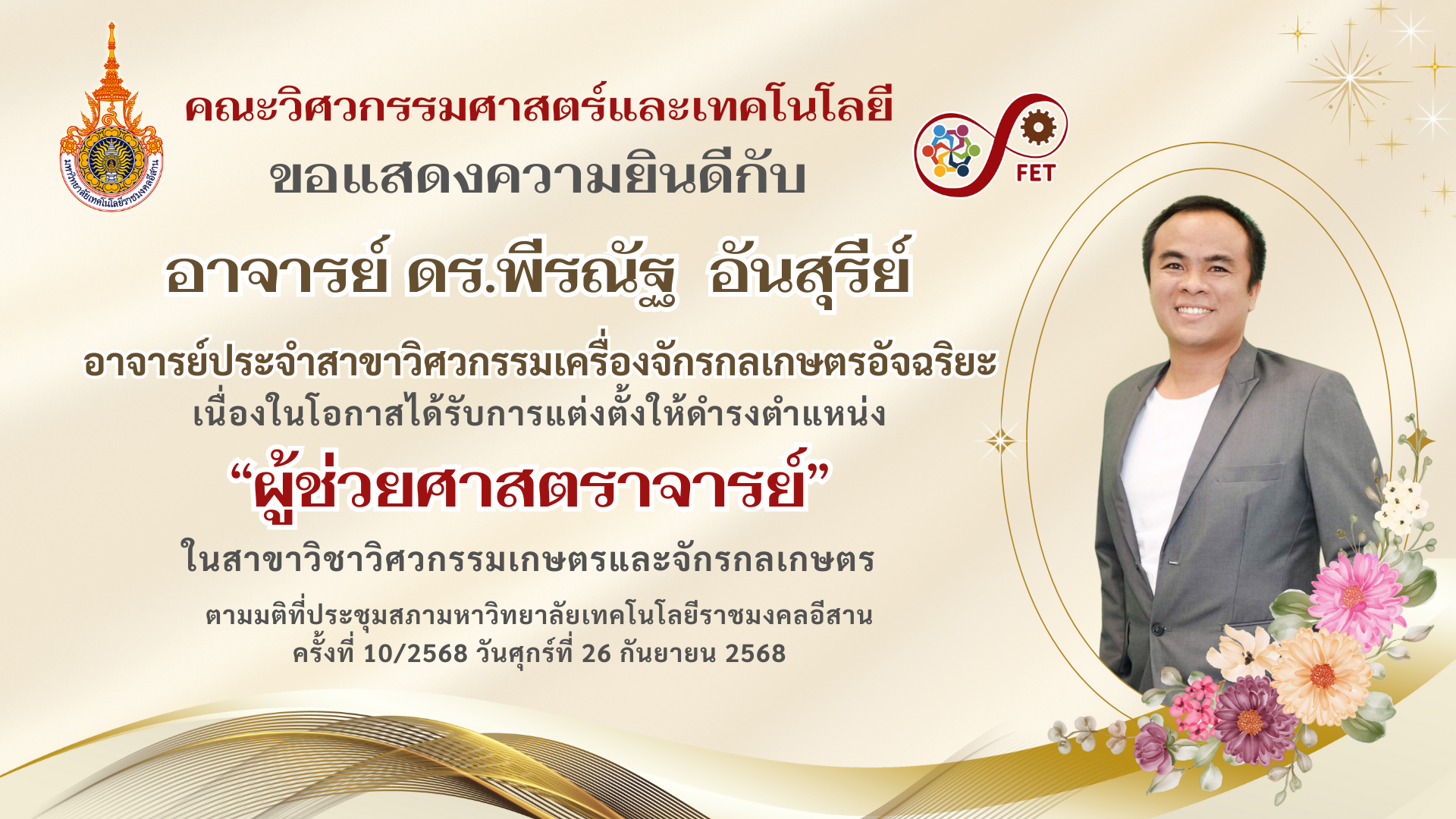 คณะวิศวกรรมศาสตร์และเทคโนโลยี ขอแสดงความยินดีกับคณาจารย์